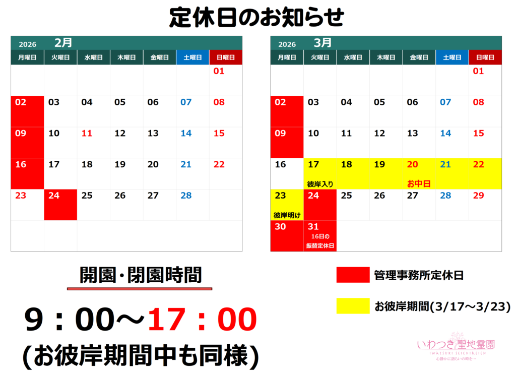 お彼岸期間2026年3月17日~3月23日まで。